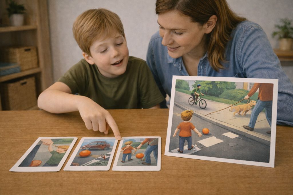 Игра «Что произойдёт дальше?» учит ребёнка соединять настоящее и будущее: замечать детали, представлять несколько исходов и выбирать более безопасный и разумный. Это навык, который пригодится и на дороге, и в общении с людьми, и в любом деле, где важно думать не только о том, что уже случилось, но и о том, что может произойти через шаг.