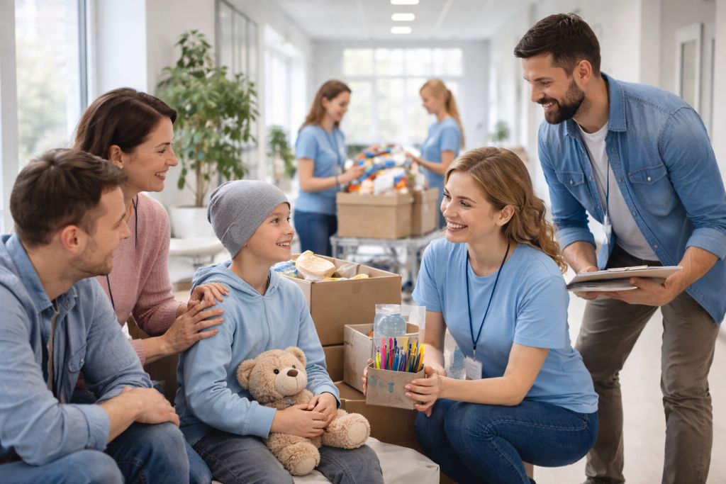 • помогают с жильём и бытом для иногородних семей;